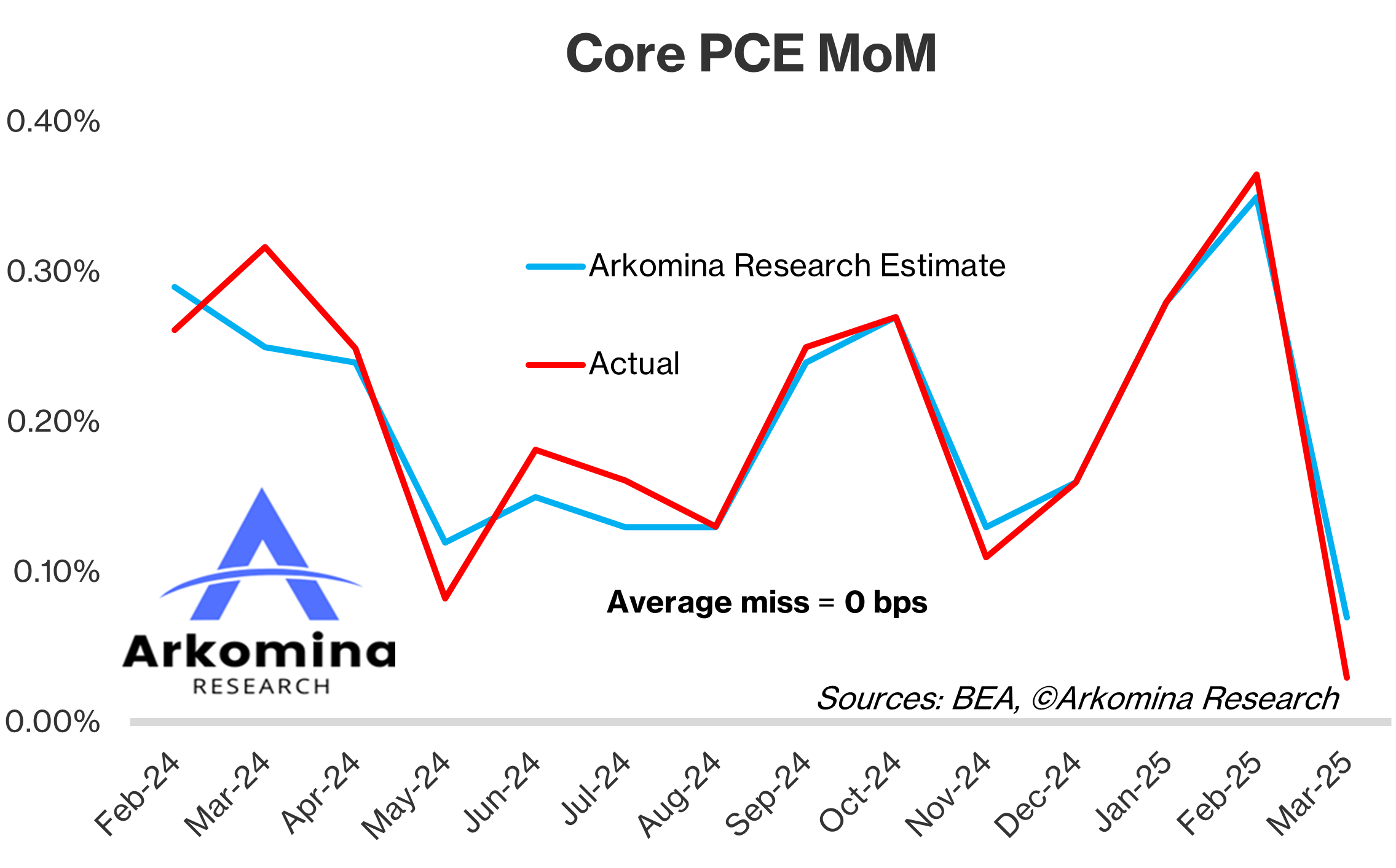 My average error for forecasting core PCE has also been perfect at 0 bps.